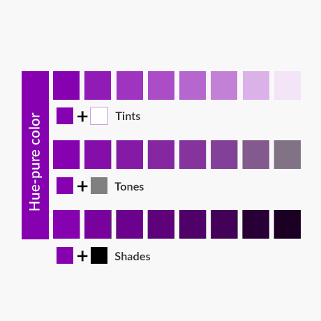 Shade is a variety of a color created by adding black to a hue. This creates deeper, dark colors.