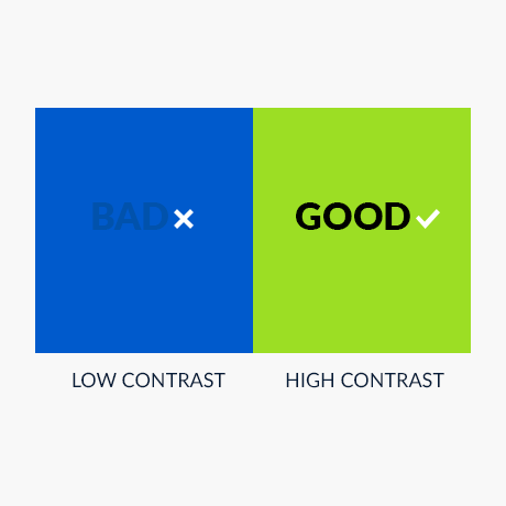 Contrast is a pronounced difference between colors, shape, size, typeface, texture or other design element, such as dark versus light or thick vs thin. In typography, contrast refers to variety of stroke thicknesses.