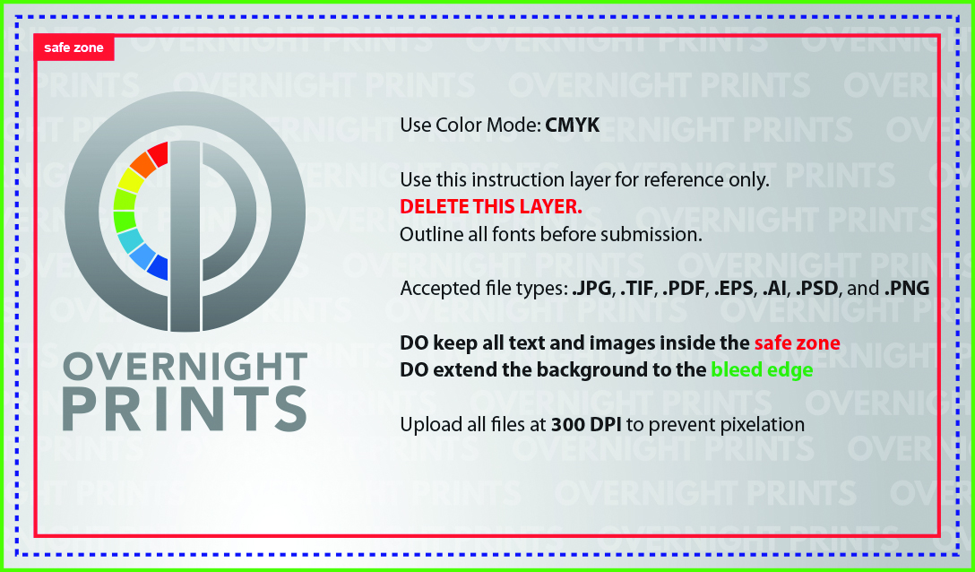 Size your image files to the Bleed Size to ensure your background extends to the edge of the card.