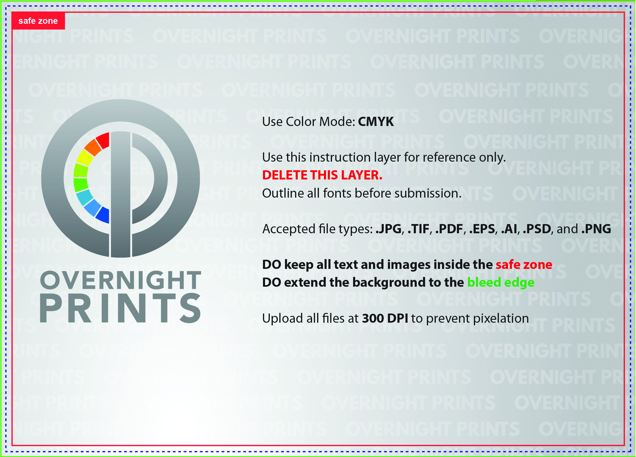 Size your image files to the Bleed Size to ensure your background extends to the edge of the card.
