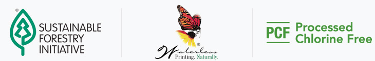 Overnight Prints is proud to be the only environmentally conscientious online print company. All of the paper we use comes from trees harvested under the Sustainable Forest Initiative. It is processed without environmentally harmful bleach and chlorine agents. Our recycled paper is made from 100% post-consumer recycled fiber that is PCF (Processed Chlorine Free) and Green Seal™ Certified.