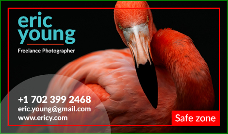 In the following sample image, the text of the business card extends beyond the safe zone. Objects that are not in the safe zone may be cut off and lead to undesired results.
