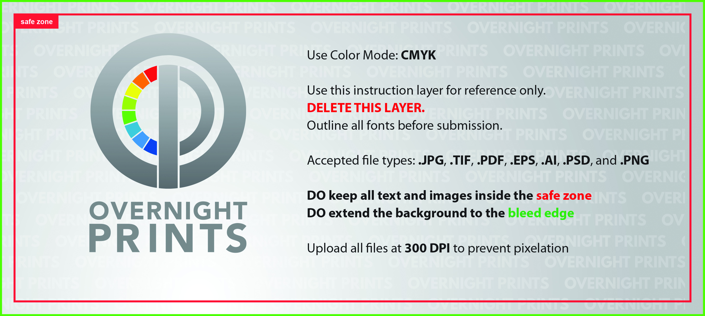 Size your image files to the Bleed Size to ensure your background extends to the edge of the card.