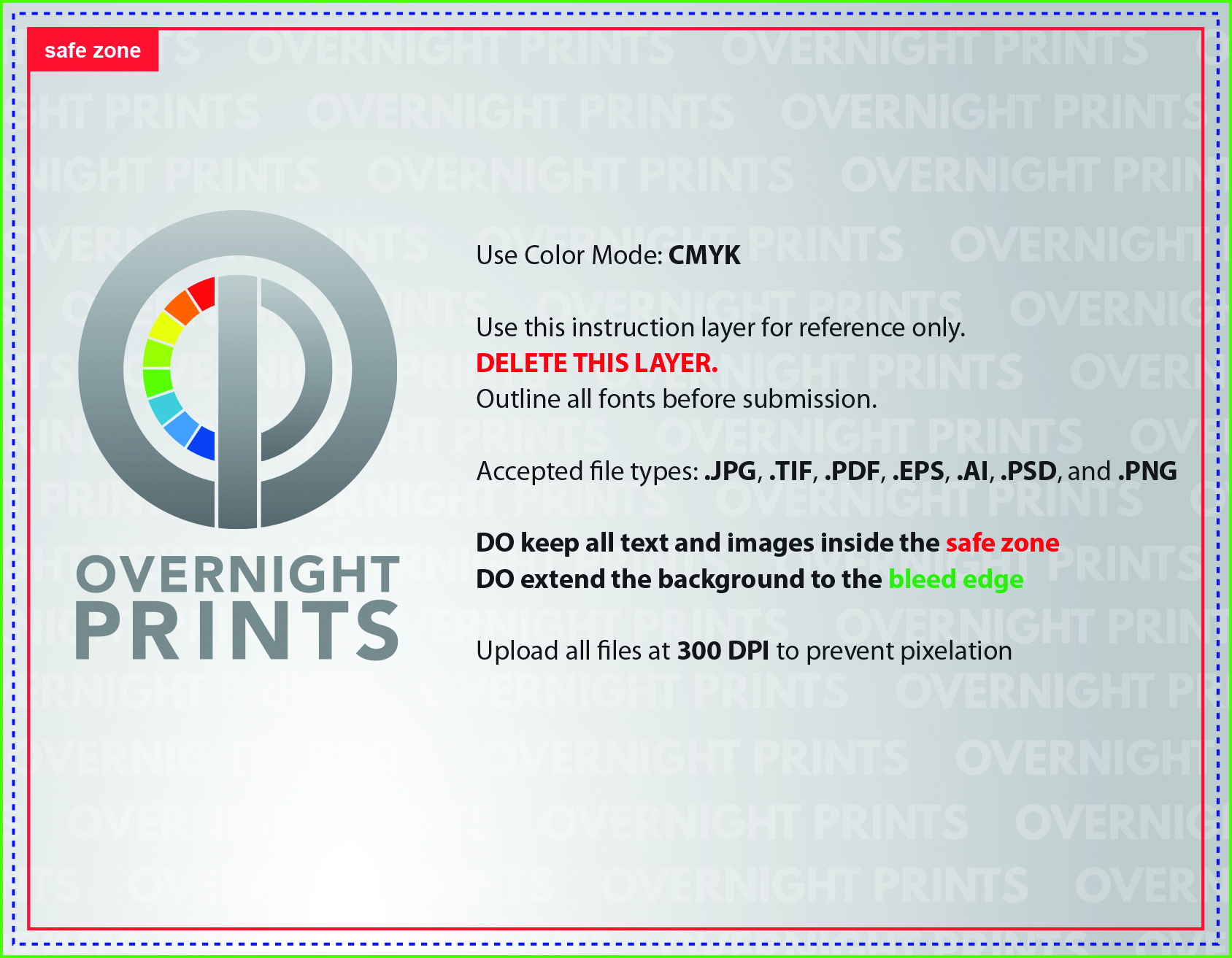 Size your image files to the Bleed Size to ensure your background extends to the edge of the card.