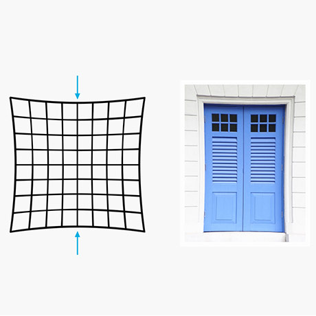 An optical illusion, pincushion distortion refers to parallel lines in a digital image that appear to bow inwards.