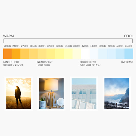 Color temperature is a linear scale that measures color of ambient lighting with warm light measured in low numbers and cool light measured in higher numbers.